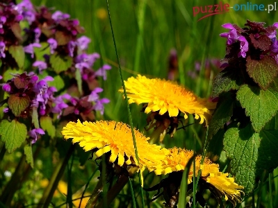 Mniszek Pospolity, Rośliny, Zieleń, Łąka, Jasnota Purpurowa, Mlecz