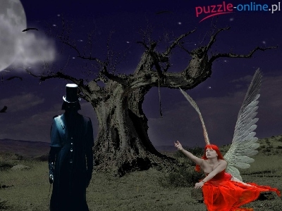 Puzzle Postać, Drzewo, Czarna, Anioł