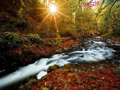 Potok, Słoneczne, Jesień, Drzewa, Promienie