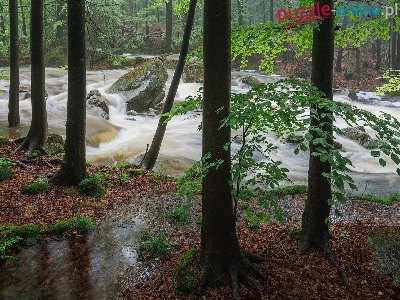 Kamienie, Rwący, Las, Potok, Drzewa, Rzeka