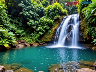 Las, Potok, Wodospad, Rośliny, Kamienie