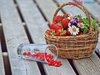 Poziomki, Kwiaty, Koszyk, Truskawek, Szklanka
