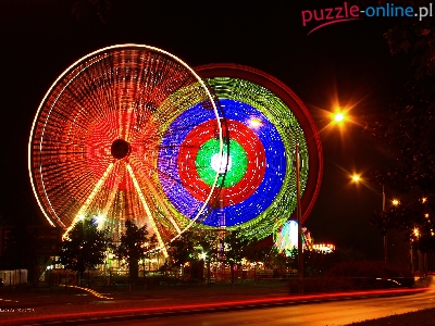 Poznań, Ulica, Wesołe Miasteczko, Lunapark, Noc