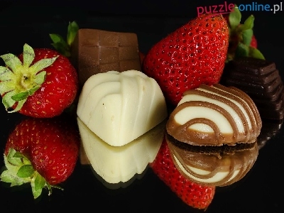 Puzzle Pralinki, Truskawki, Czekoladki, Ciemne tło
