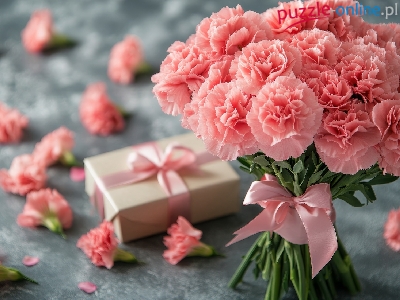Puzzle Różowe, Kwiaty, Goździki, Prezent
