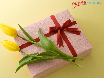 Puzzle Prezent, Żółte, Tulipany, Wstążka