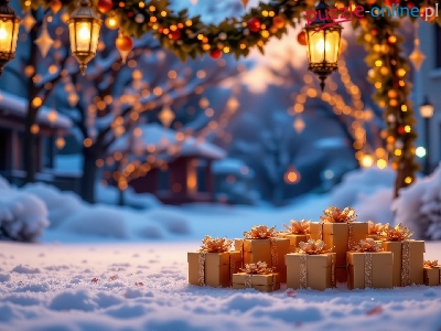 Girlandy, Åšnieg, Zima, Prezenty, ÅšwiÄ…teczne, Lampiony