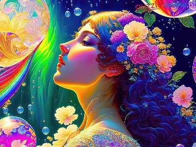 Kobieta, Profil, Dziewczyna, Grafika, Kwiaty