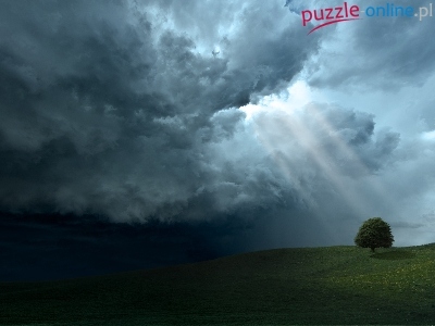 Puzzle Promienie, Drzewo, Łąka, Słońca