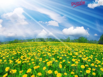 Promienie, Niebo, Mlecze, Łąka, Słoneczne