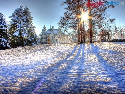 Promienie Słońca, Zima, Dom, Drzewa