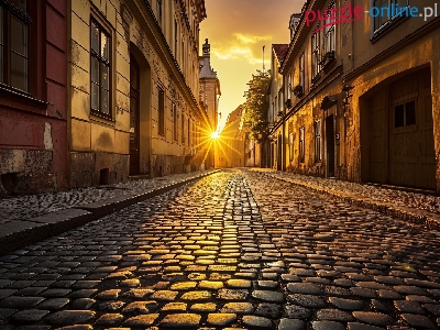 Kamienice, Brukowana, Domy, Promienie słońca, Droga