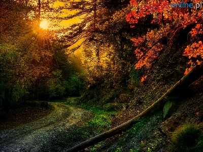 Promienie, Jesień, Las, Droga, Słońca