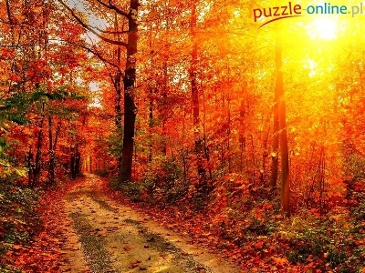 Promienie, Jesień, Las, Droga, Słońca
