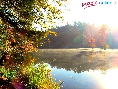 Puzzle Promienie, Jezioro, Drzewa, Słoneczne