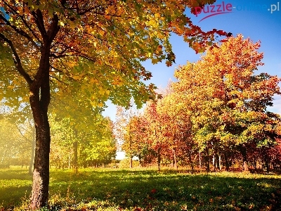 Puzzle Promienie, Kolorowe, Drzewa, Słońca