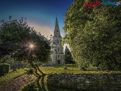Puzzle Promienie, Kościół, Drzewa, Słońca