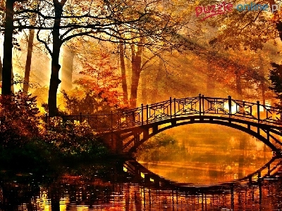 Promienie, Mostek, Park, Drzewa, Słońce
