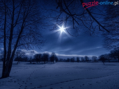 Puzzle Promienie Słońca, Pola, Drzewa, Zima