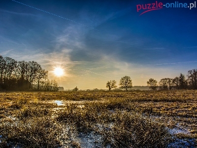 Puzzle Promienie słońca, Rozlewisko, Drzewa, Łąka
