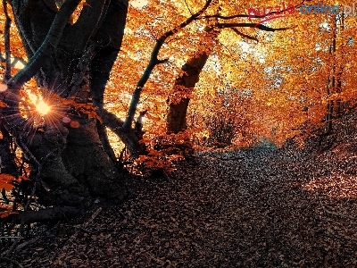 Drzewa, Promienie, Ścieżka, Liście, Jesień, Żółte, Słońca