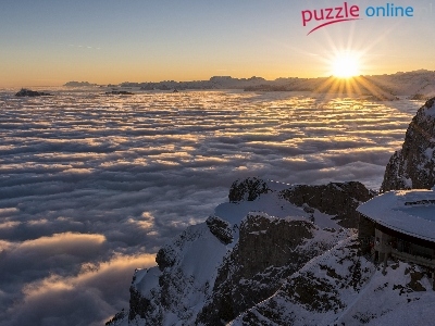 Puzzle Promienie, Chmury, Góry, Słońca
