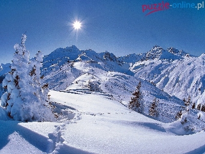 Puzzle Promienie, Zima, Góry, Słońca