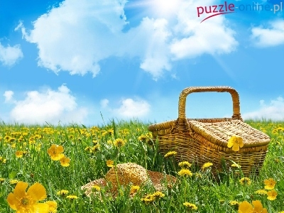 Promienie Słońca, Piknikowy, Łąka, Kwiaty, Kosz