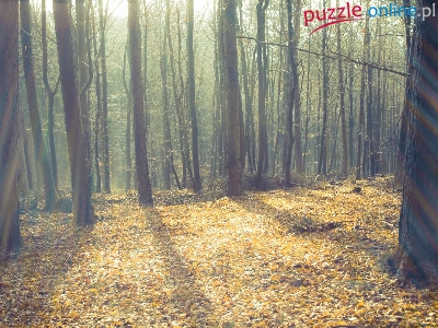 Puzzle Promienie, Drzewa, Las, Słońca