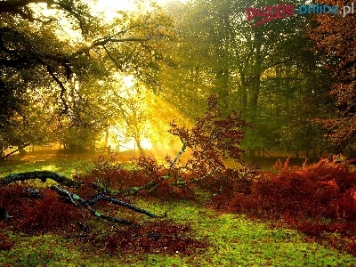 Puzzle Promienie, Jesienny, Las, Słońca
