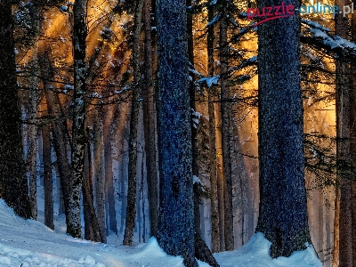 Puzzle Promienie, Zima, Las, Słońca