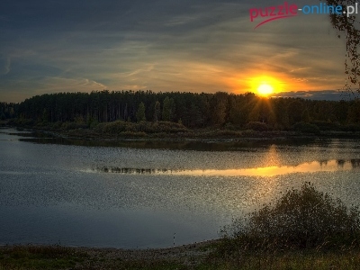 Puzzle Promienie, Jezioro, Lasy, Słońca