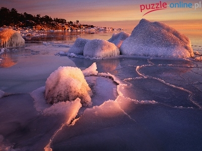Puzzle Promienie, Wybrzeże, Lód, Słońca