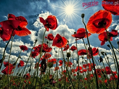 Puzzle Promienie, Czerwone, Maki, Słońca