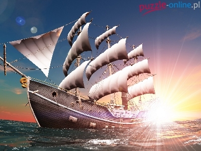 Puzzle Promienie, Żaglowiec, Morze, Słońca