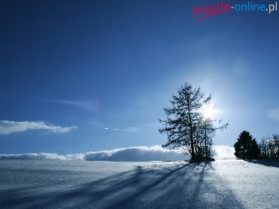 Puzzle Promienie, Drzewa, Śnieg, Słońca