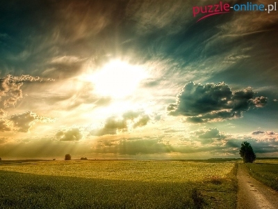 Puzzle Promienie, Droga, Pola, Słońca