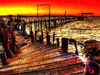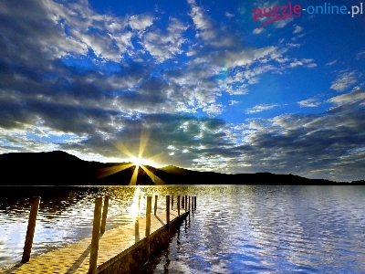 Promienie, Słońca, Jezioro, Pomost, Zachodzącego