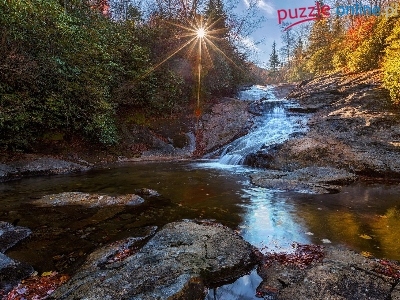 Potok, Promienie, Jesień, Las, Górski, Skały, Słońca