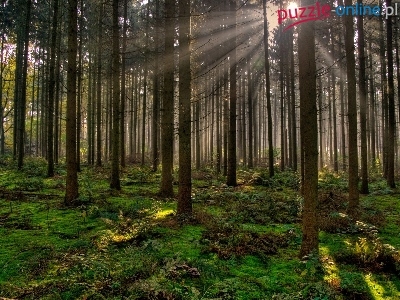 Puzzle Promienie, Las, Prześwitujące, Słońca