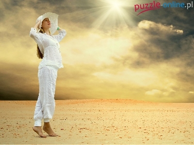 Promienie, Kapelusz, Chmury, Kobieta, Pustynia, Słońca