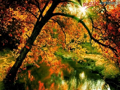 Promienie, Las, Drzewo, Jesień, Rzeczka, Słońca