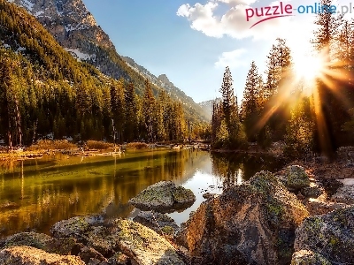 Promienie, Kamienie, Góry, Rzeka, Słońca
