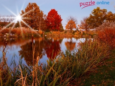 Puzzle Promienie, Jesień, Rzeka, Słońca