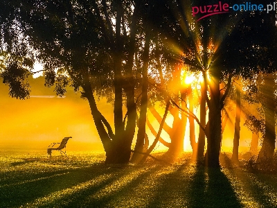 Promienie, Ławeczka, Zachód, Słońca, Las