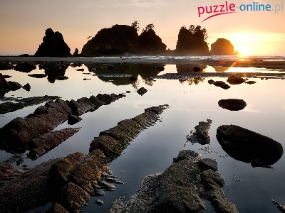 Puzzle Promienie, Zachód, Słońca, Skały