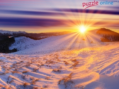 Promienie, Zima, Zachód, Słońca, Góry