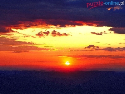 Puzzle Promienie, Zachód, Słońce, Chmury