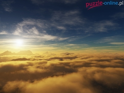 Puzzle Promienie, Zachód, Słońce, Chmury
