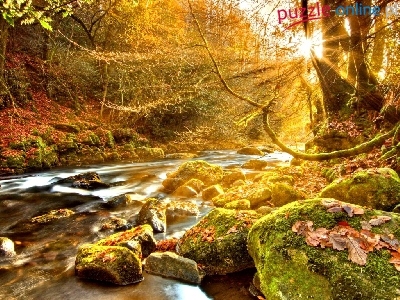 Promienie, Jesień, Las, Strumyk, Słoneczne